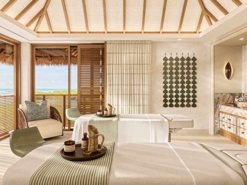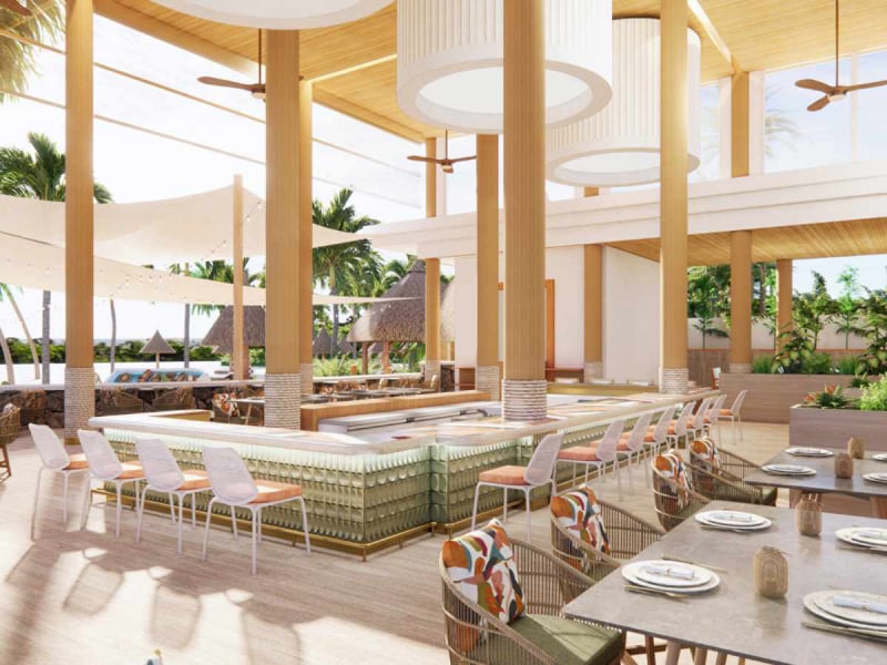 Spa : Niché au-dessus de la mangrove, le Spa sur pilotis propose des soins inspirés des traditions mauriciennes et indiennes. Suites doubles, hammam, sauna et salle Aqua Vichy en bois sculpté complètent l’expérience.