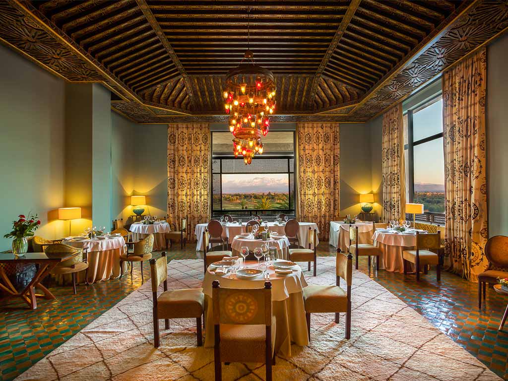 Al Ain : surplombant les jardins et le golf et superbement décoré de mosaïques, le restaurant Al Ain associe l'art d'une cuisine délicate et des plats traditionnels marocains pour donner naissance à un festival de saveurs. Le Chef Salim Aitezzine et son équipe mettent en valeur les épices et les condiments essentiels dans la cuisine marocaine en mélangeant de façon subtile et délicate les traditions arabes, berbères et mauresques.